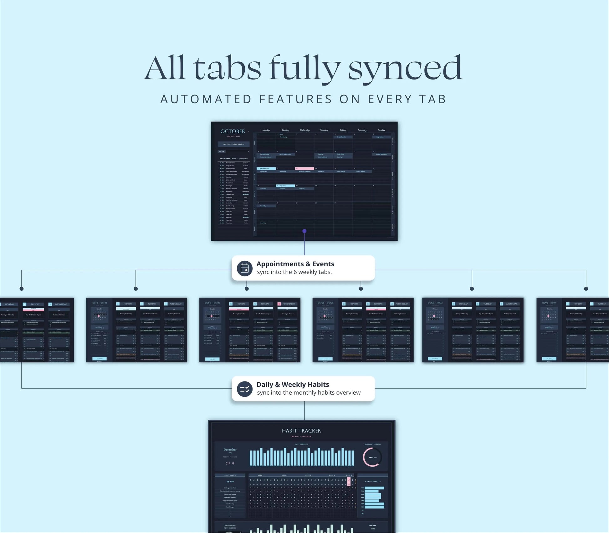 “I’ve tried many digital planners, but this spreadsheet is the first one that actually fits my workflow. I can track goals, tasks, and habits in one place.” –—